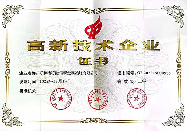 Welcome to visit the official website of Huhhot Rongxin New Metal Smelting Co.,Ltd.